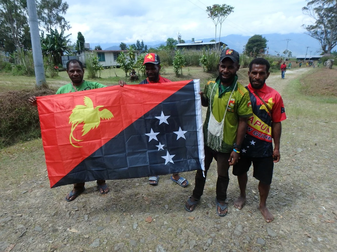 The PNG flag proudly displayed by Telefomin young men