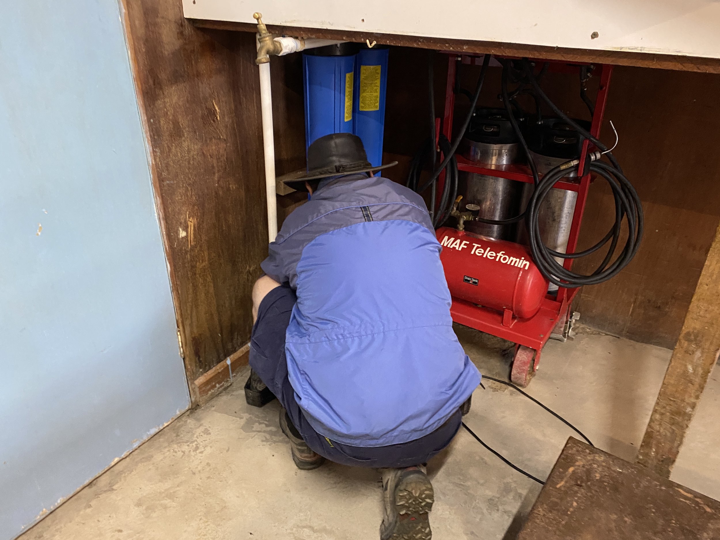 Fixing the base water pump. Without the water pump, it becomes very challenging to flush the toilet or wash your hands. So Ryan had to delay his take-off to take a part off the water pump in our empty transit house to make sure the base team could still have access to water during the day.