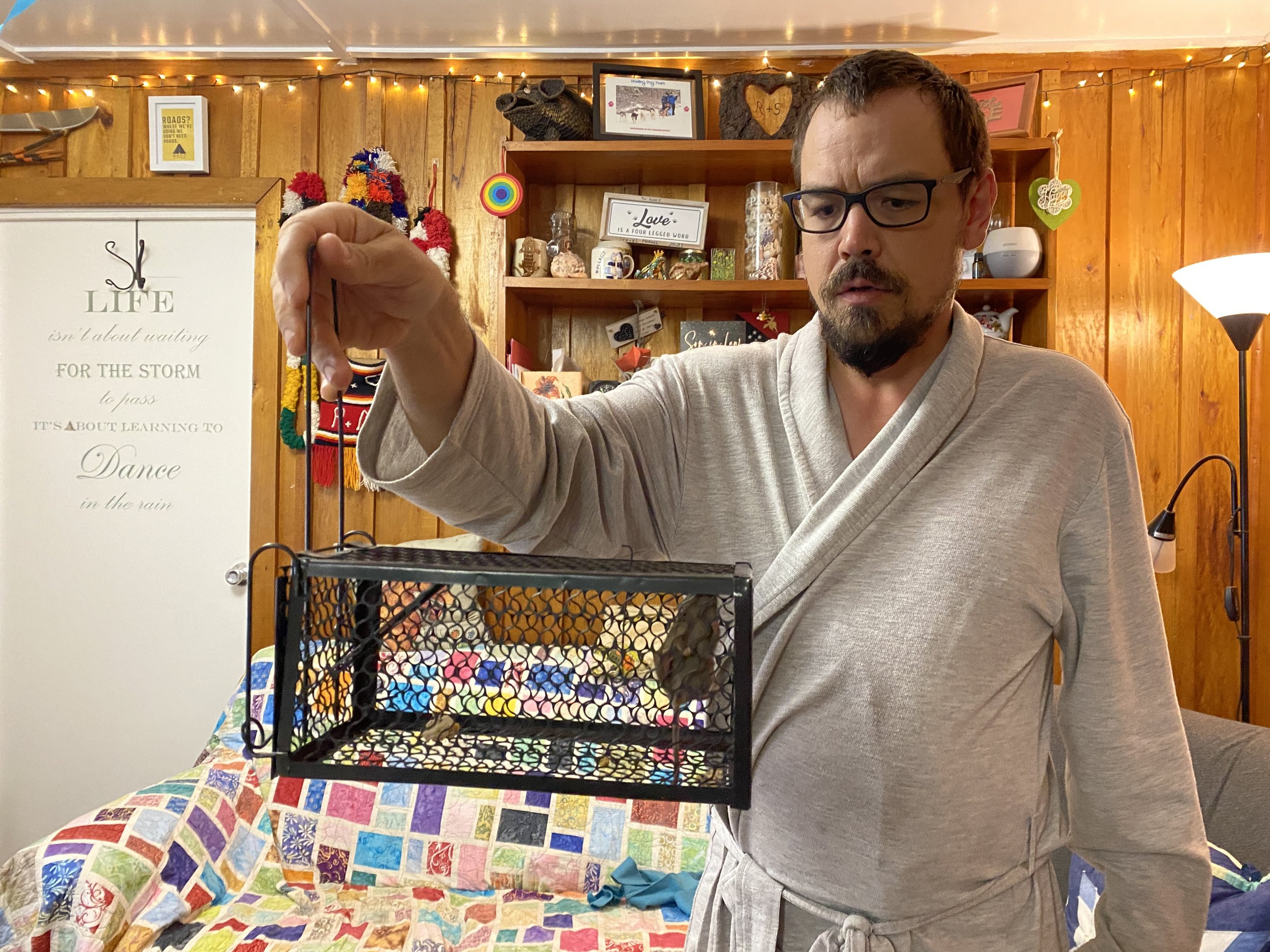 Mouse catcher! After we had new security doors fitted, they left a gap under them (because our doorframes aren’t square), which let rodents in. They were too small to set off the rat traps we have, so Ryan baited one and rigged a line so he could trigger it when a mouse went inside, and it worked!